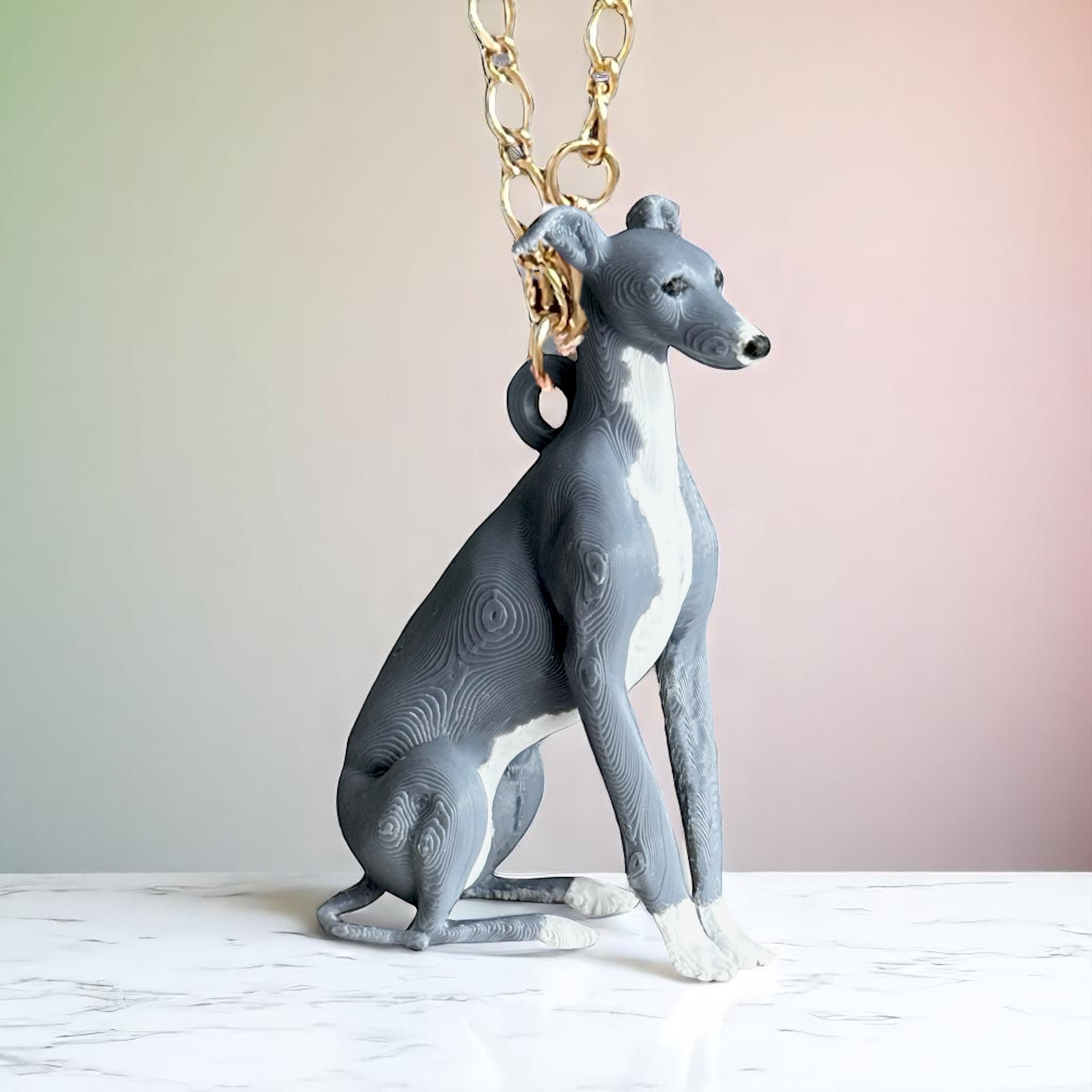 イタグレ/ウィペットの可愛くて存在感抜群の3Dフィギュア型のチャームです。