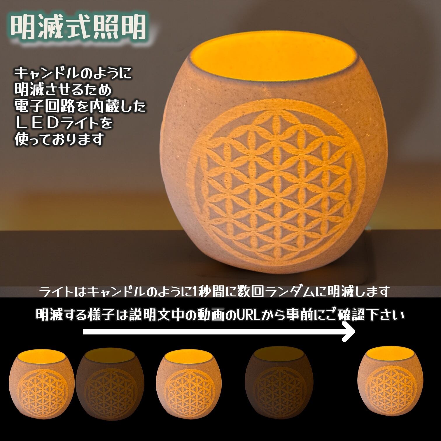 フラワーオブライフ柄 LEDティーライト 明滅式LEDキャンドルライト 電池式 軽量樹脂製 TOLフラワーオブライフ TOLオブジェ