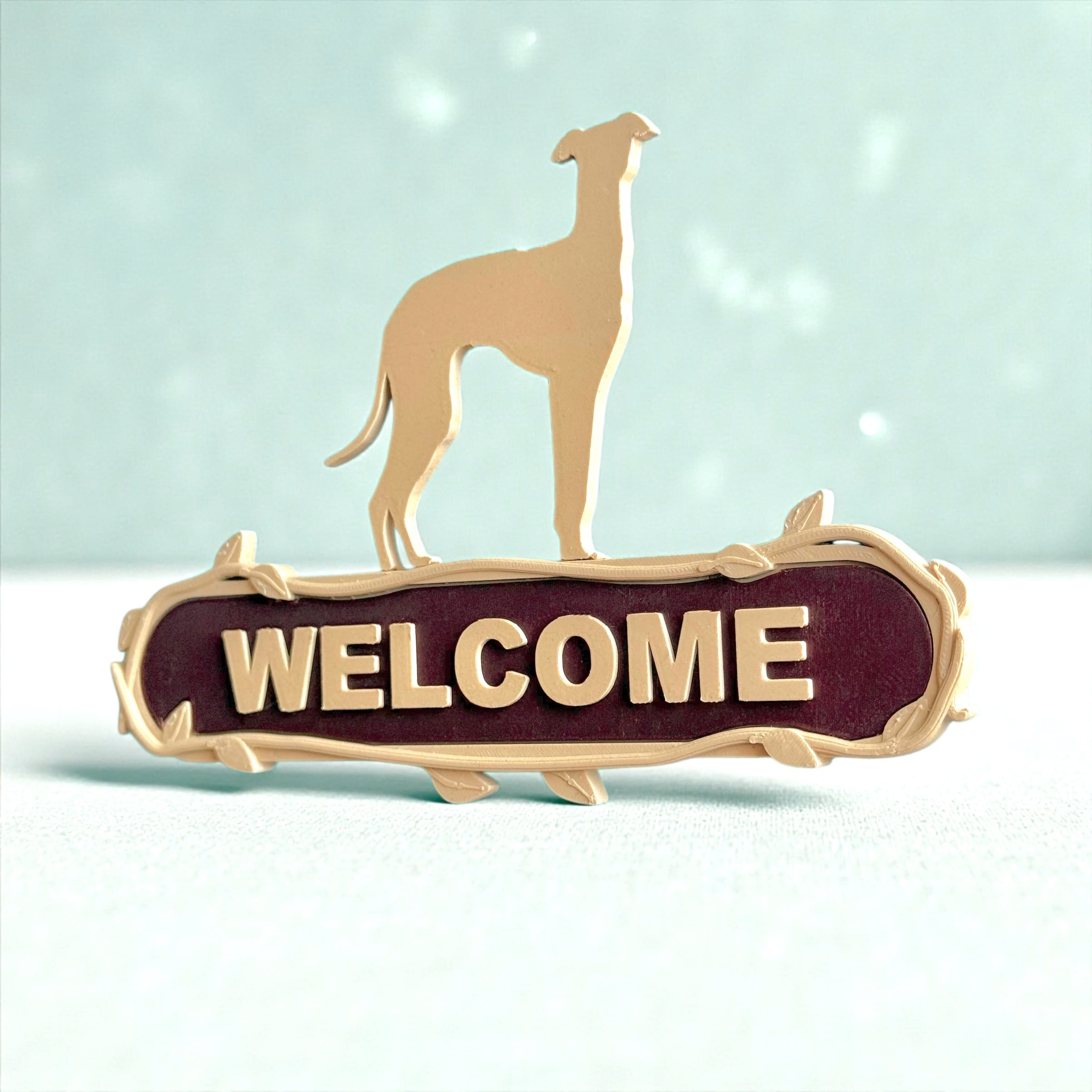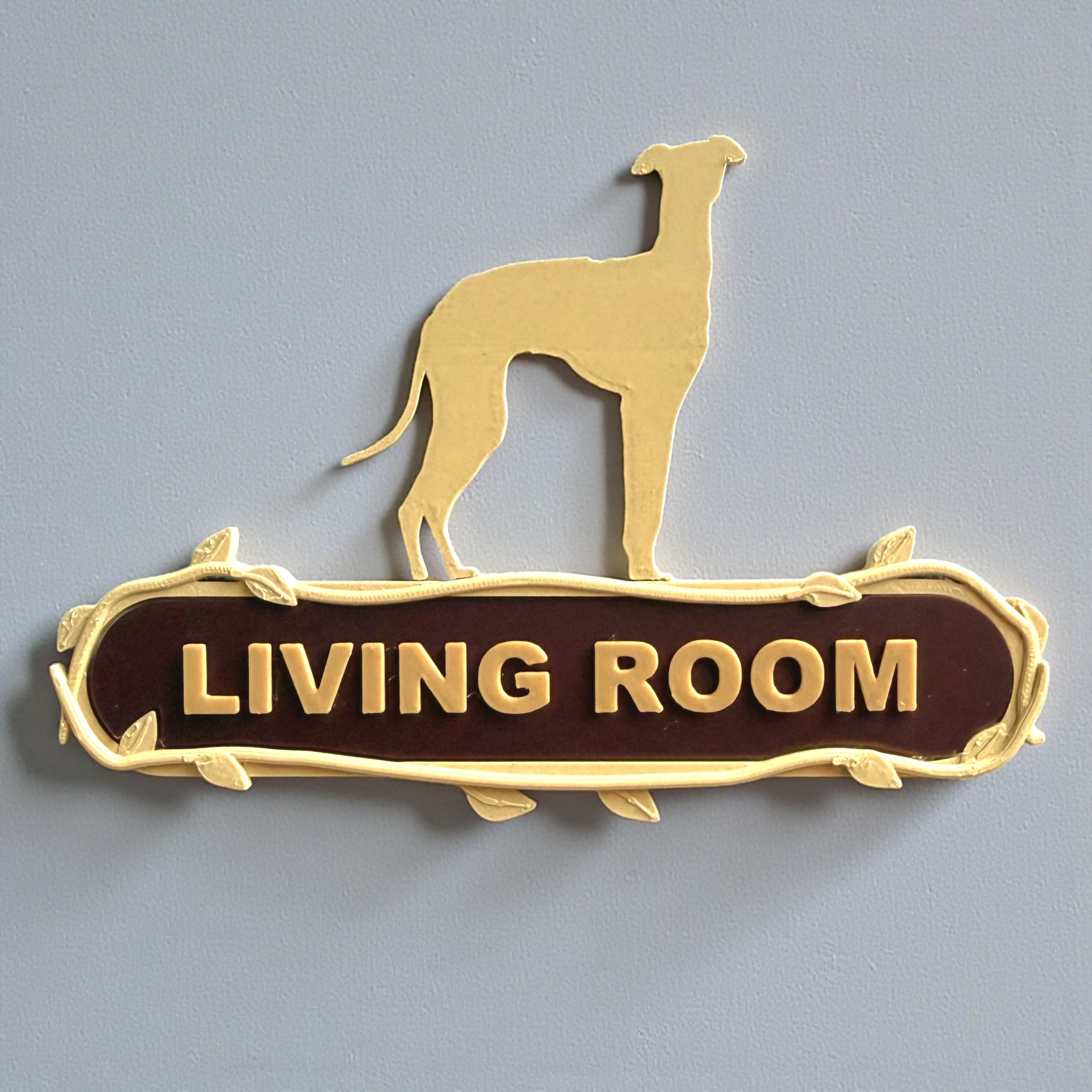 可愛いイタリアングレーハウンド/ウィペットのリアルなシルエットが付いている、室内の壁やドアに貼り付ける為のルームサイン・ウェルカムボード・ドアプレートです。