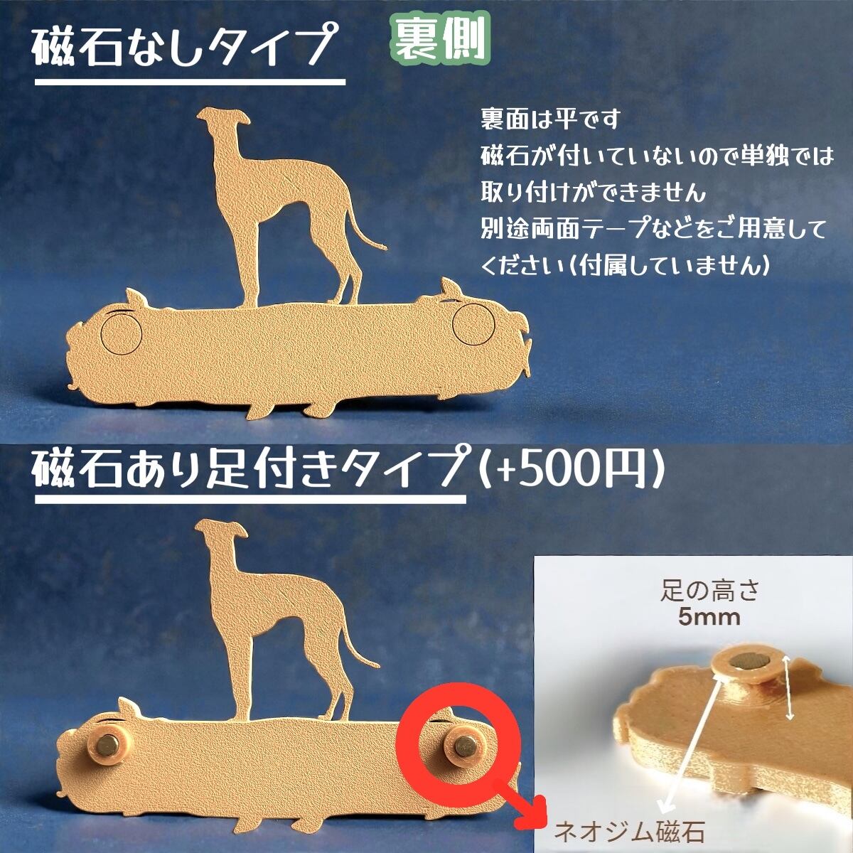 上記の6種類と磁石(取付用足)の有無をご購入時に必ず1つ選択して下さい。