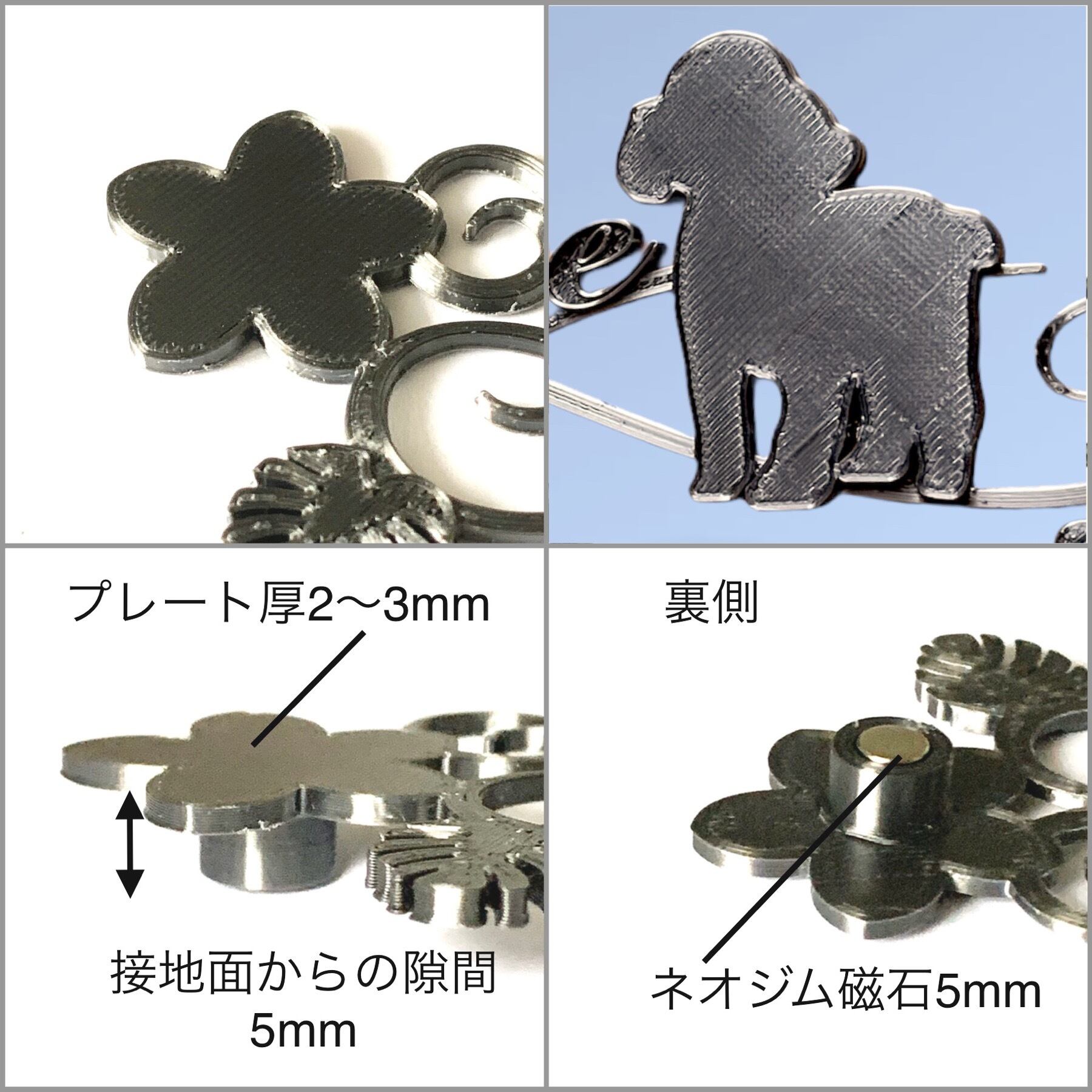 (プレート厚2〜3mm、取付用足高5mmで設置面から5mmの隙間ができます)