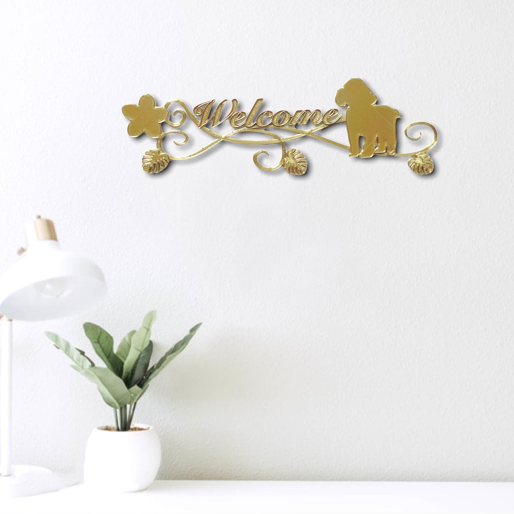 #ウェルカムボード #ドアプレート #プルメリア #モンステラ #蔓草 #welcome #ケージ #プードル #トイプードル #犬