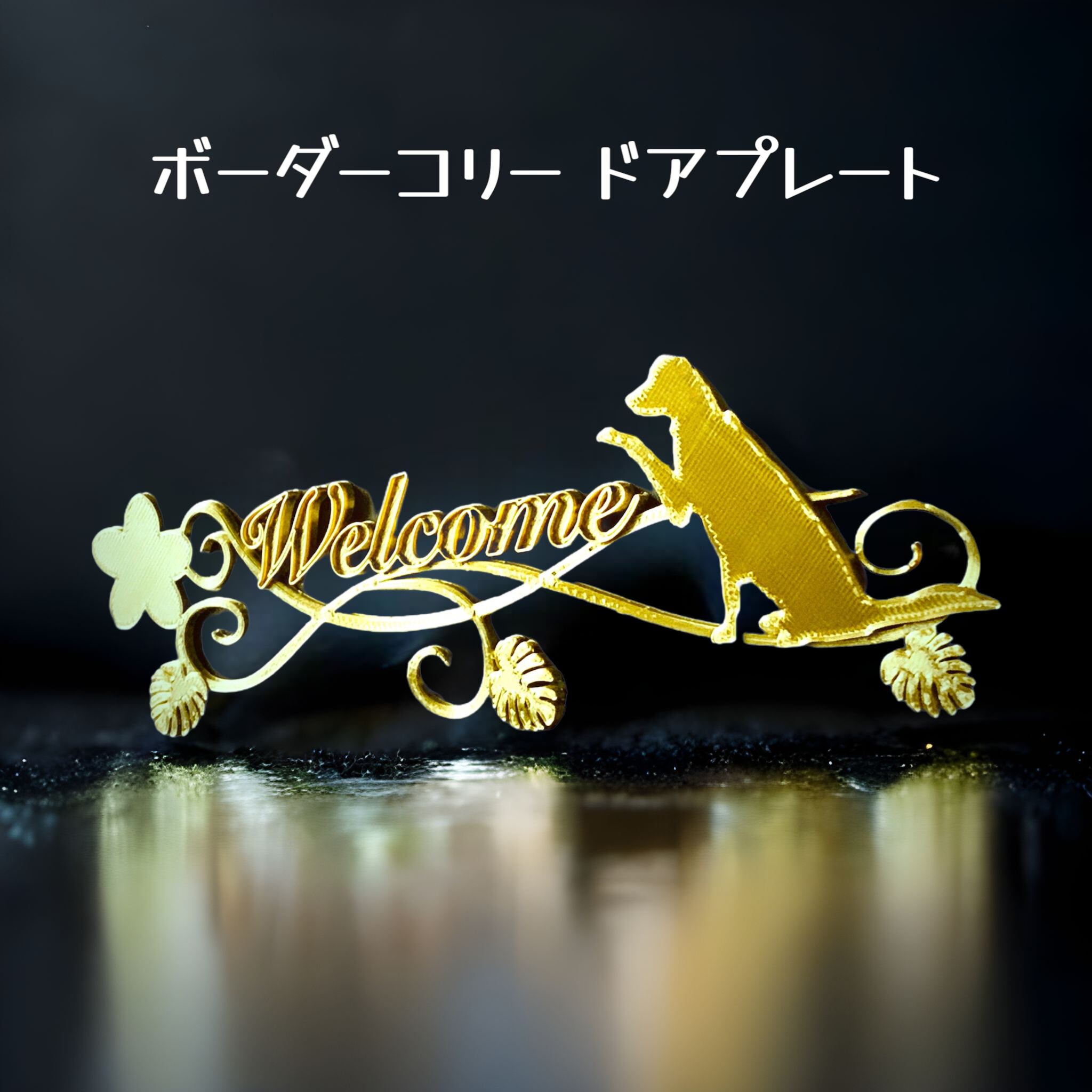 【SALE中】ボーダーコリー ドアプレート小 アンティークゴールド色 樹脂製 TOLドアプレート TOLボーダーコリー