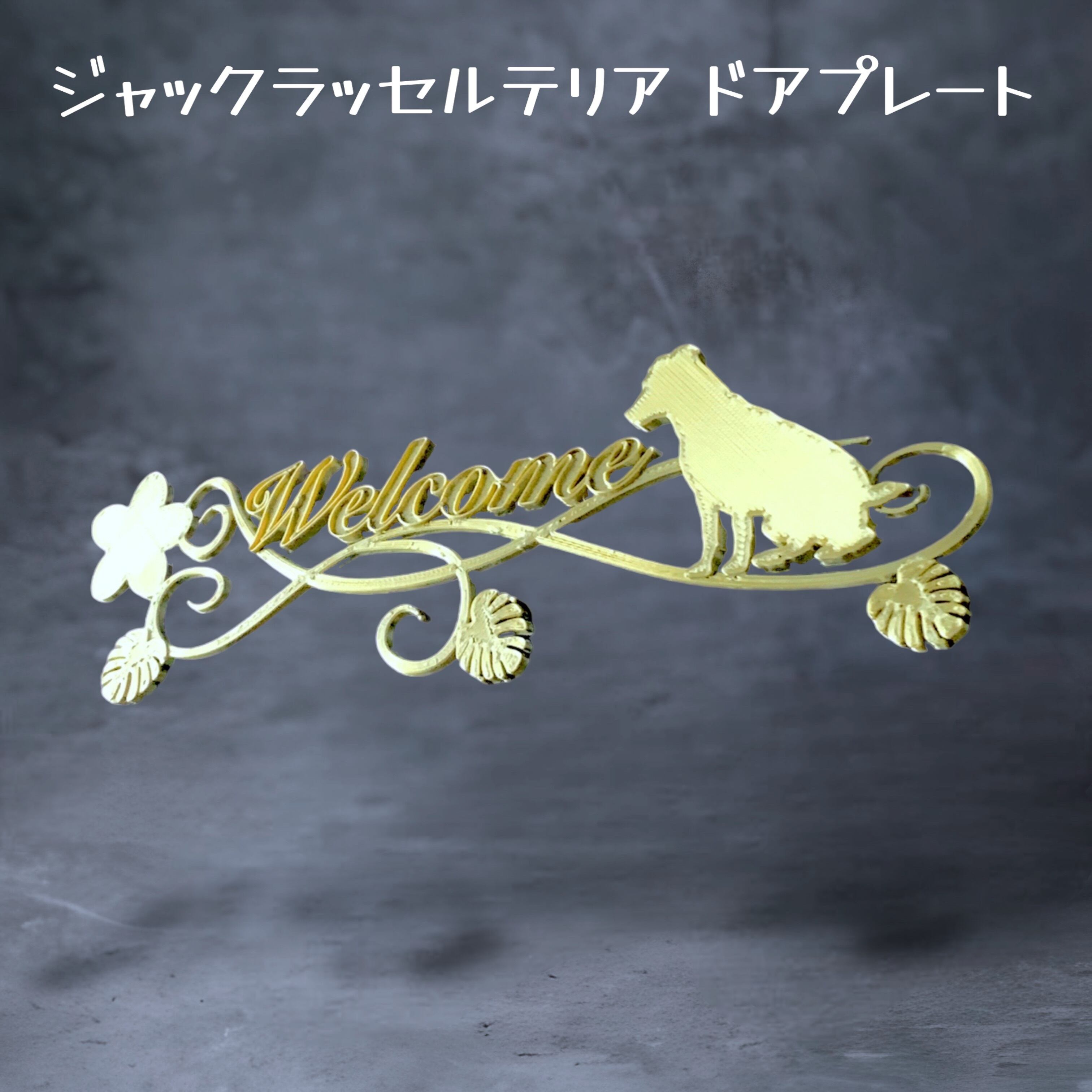 #ウェルカムボード #ドアプレート #プルメリア #モンステラ #蔓草 #welcome #ケージ #ジャックラッセルテリア #ジャックラッセル #犬
