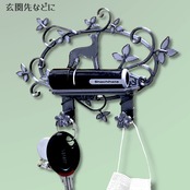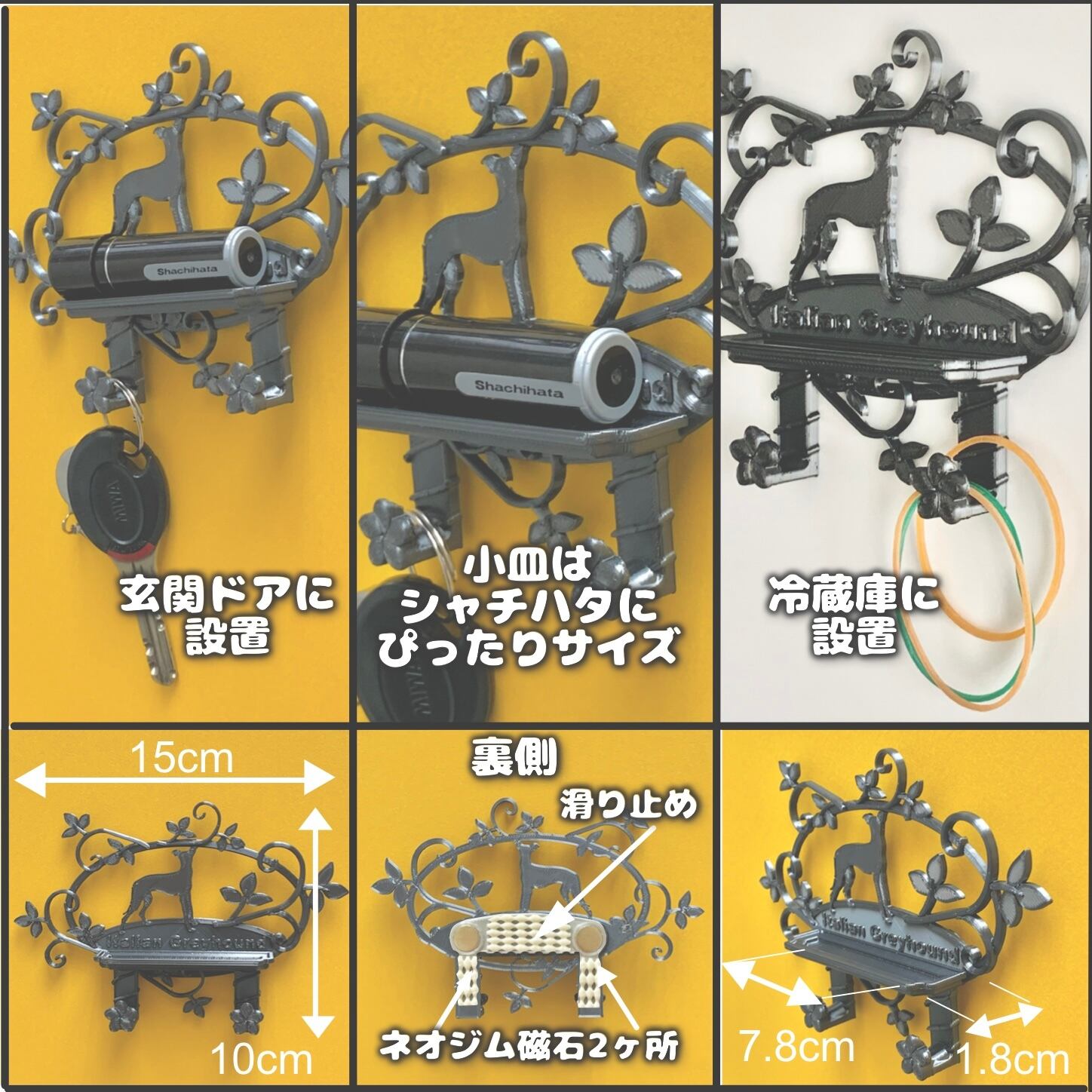 イタグレのシルエットが可愛い、鍵掛け・印鑑置き・マスク掛け等の機能の付いたドアプレートです。