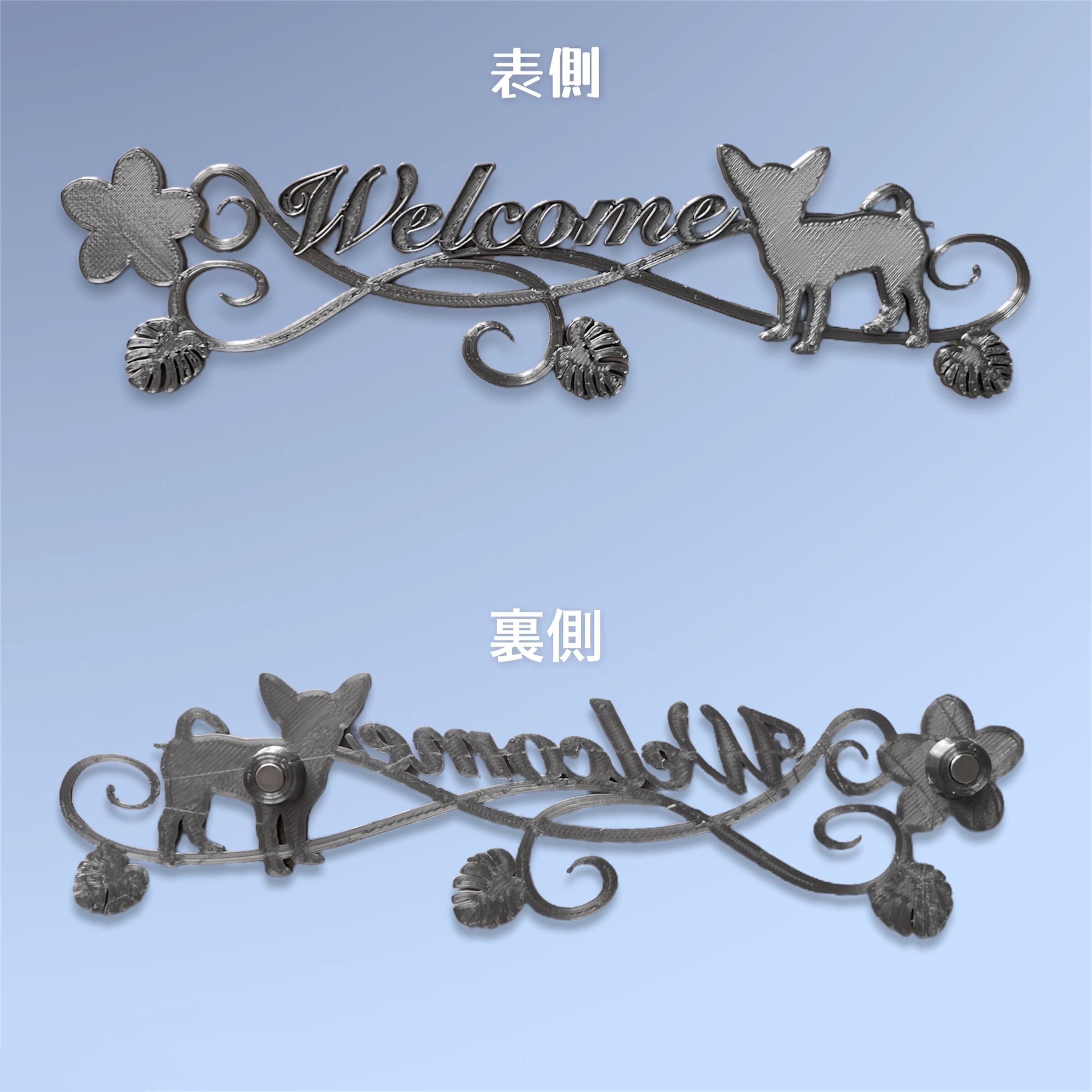 #ウェルカムボード #ドアプレート #プルメリア #モンステラ #蔓草 #welcome #ケージ #チワワ #わんこプレートシリーズ #DOG #アート