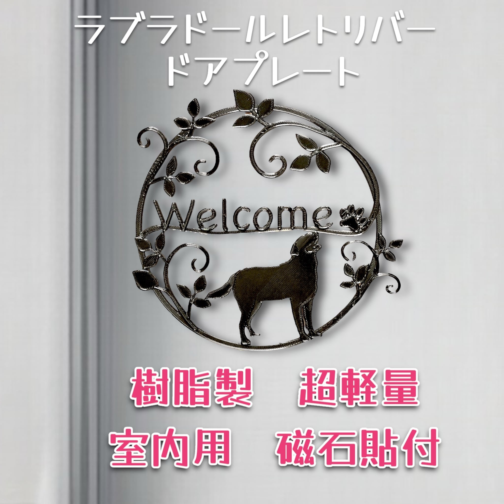 ラブラドールレトリバー 樹脂製ドアプレート 室内用 超軽量 磁石貼付け メタルブラック色 TOLラブ TOLドアプレート