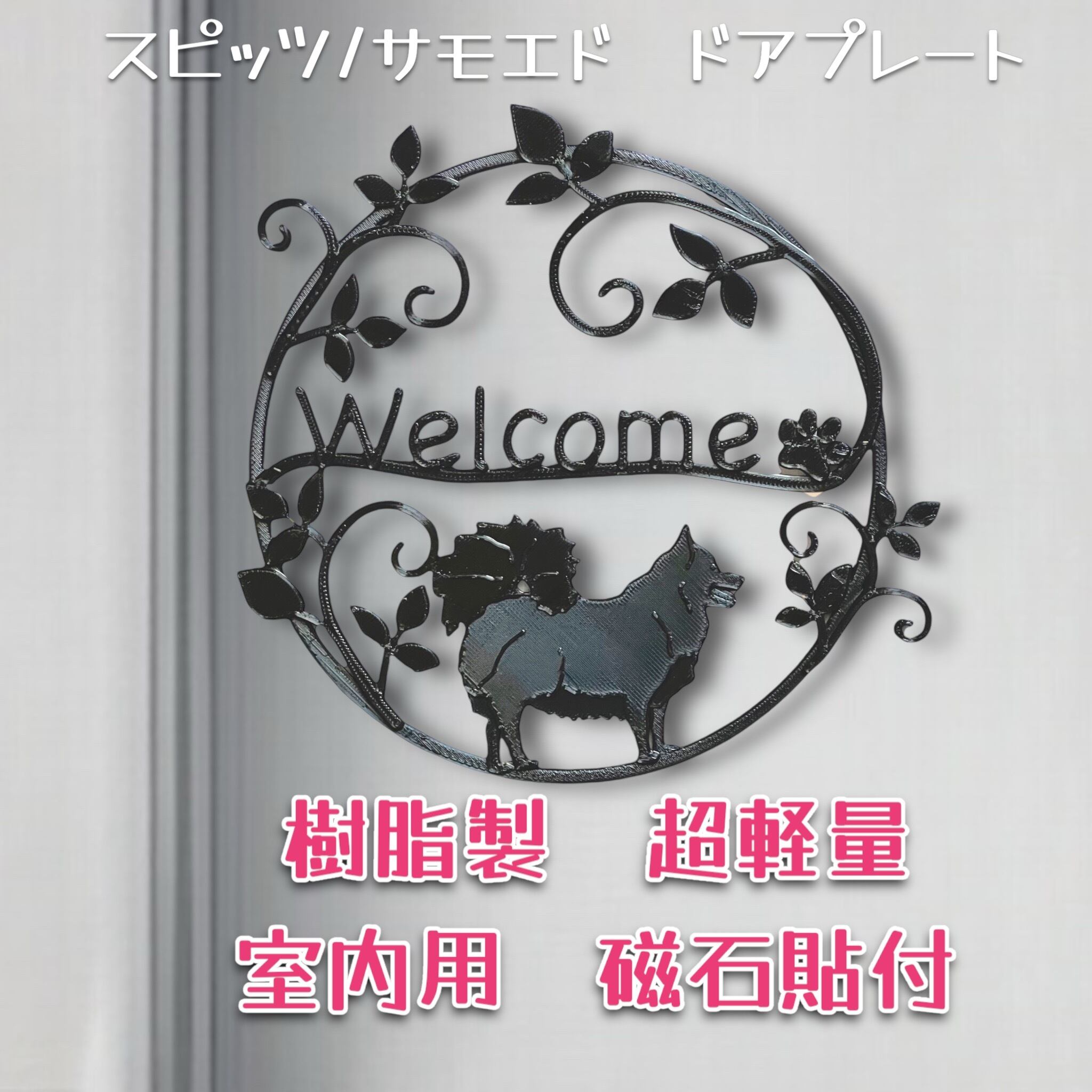 スピッツ/サモエド 樹脂製ドアプレート 室内用 超軽量 磁石貼付け メタルブラック色 TOLスピッツ TOLサモエド TOLドアプレート