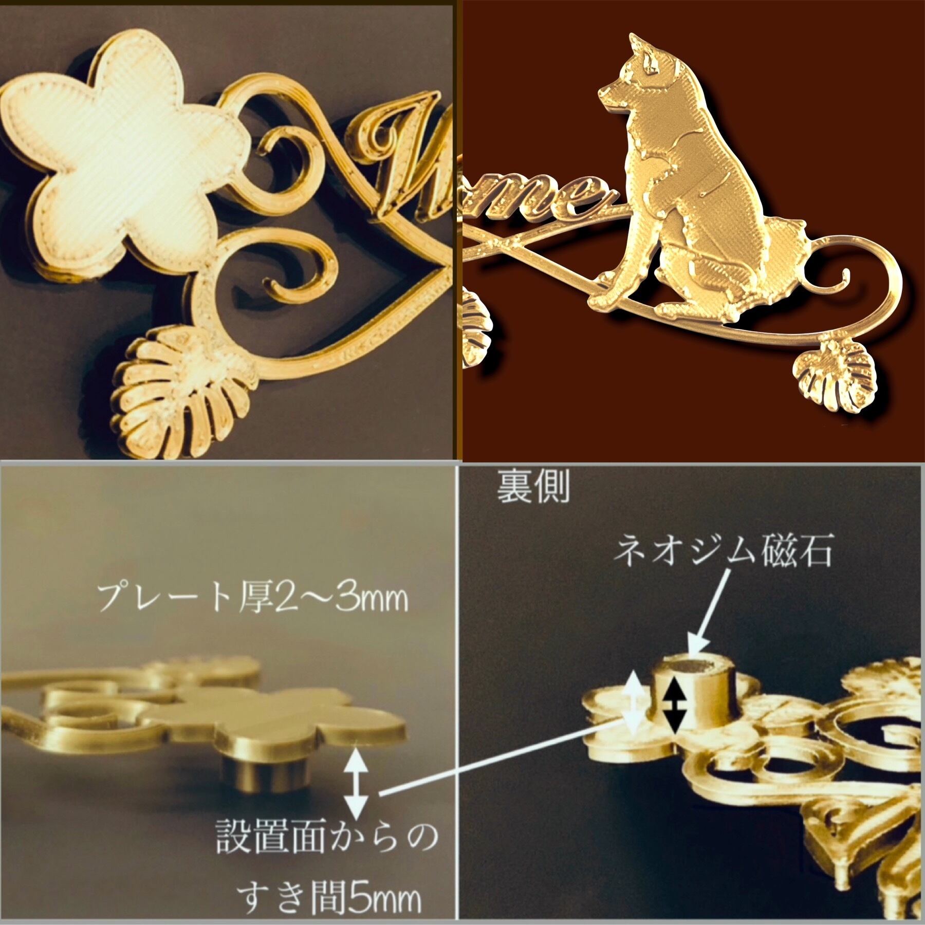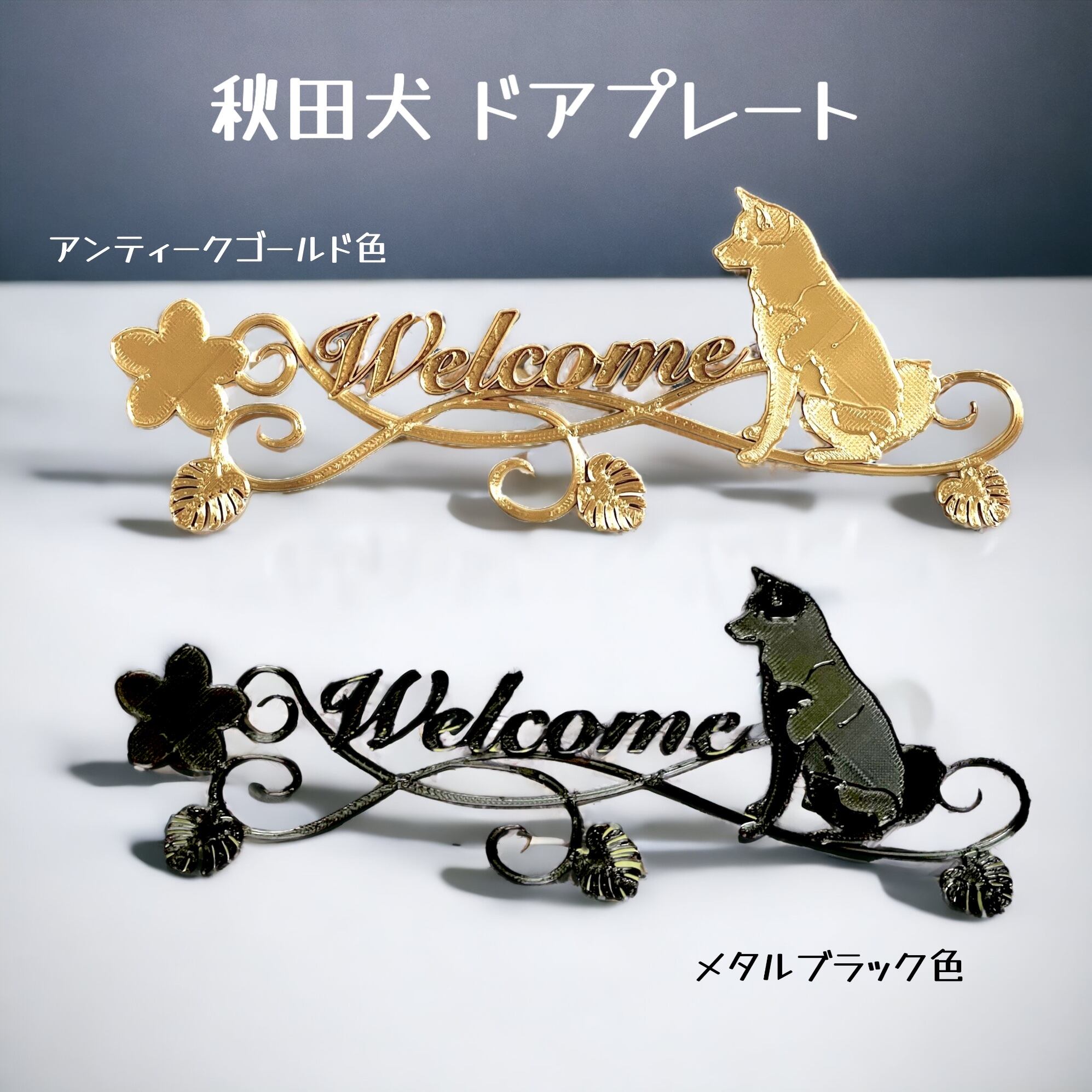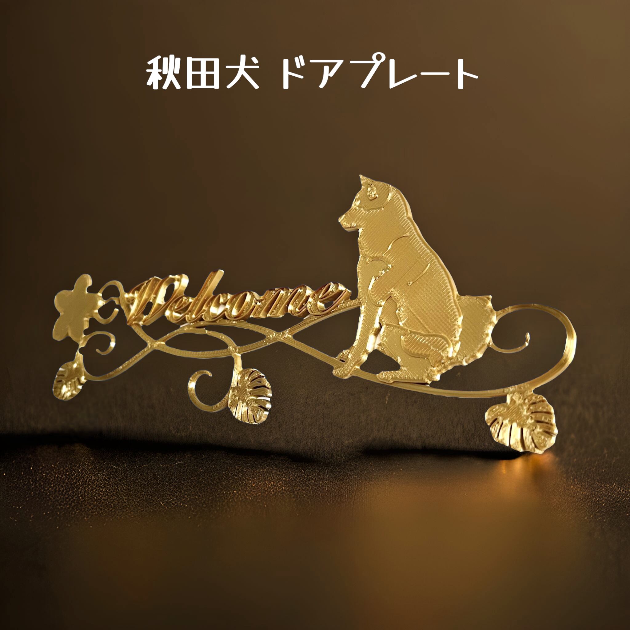 ドア、ケージ等に取付ける秋田犬のシルエットの可愛い小型プレートです。
