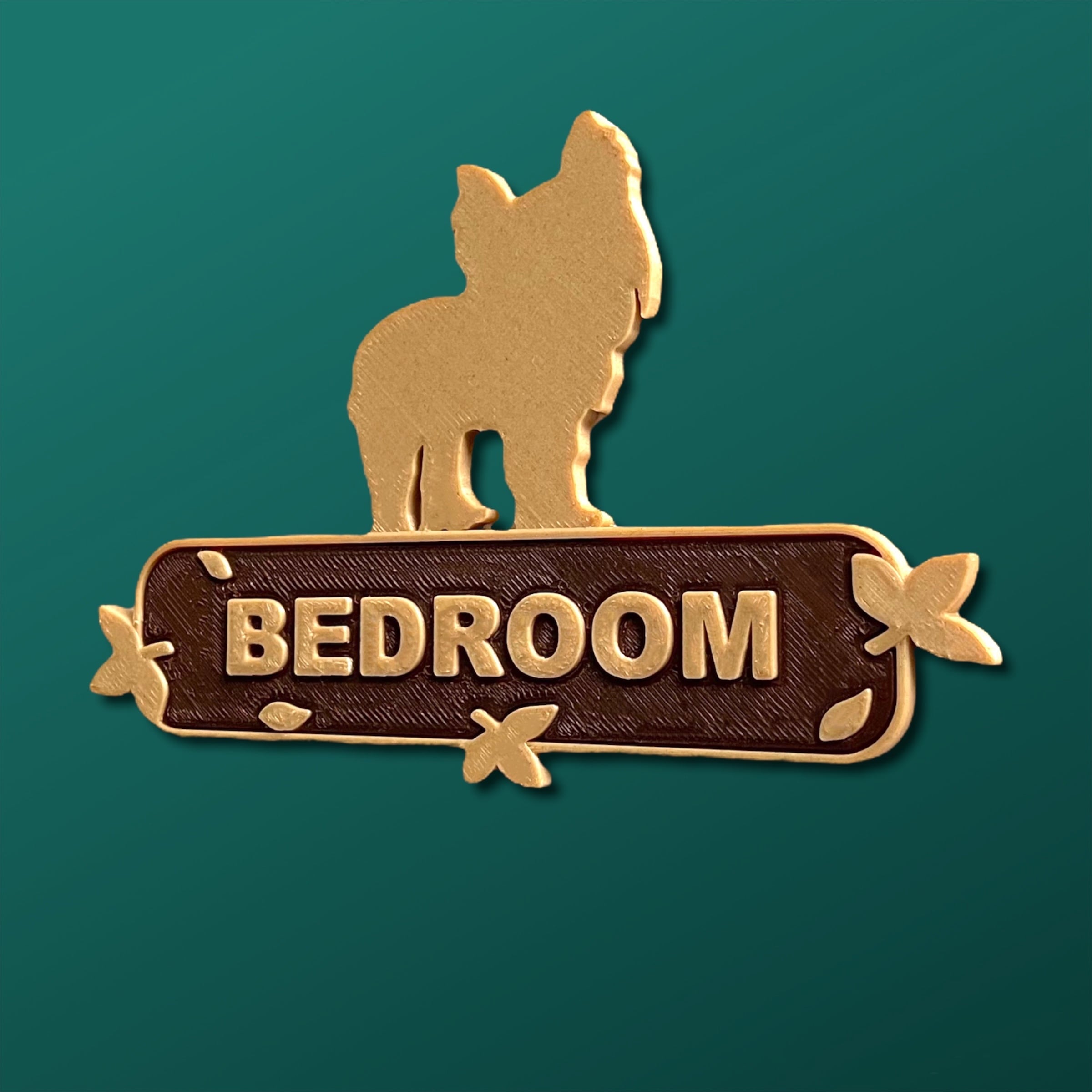 可愛いヨークシャーテリアのリアルなシルエットが付いている、室内の壁やドアに貼り付ける為のサインボードです。