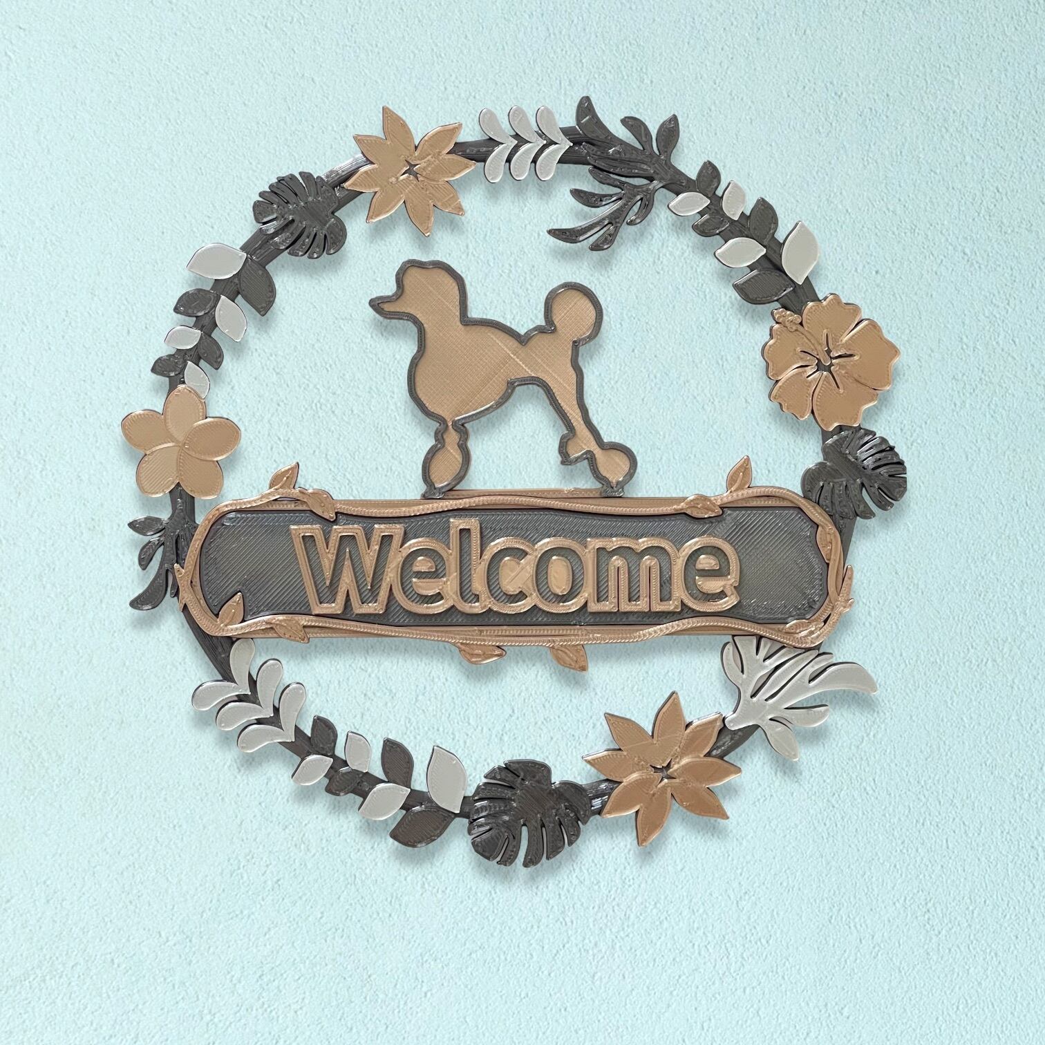 ドア、壁面等に磁石で設置可能な可愛いプードルの付いた、小型でも存在感の大きいドアプレート、ウェルカムボードです。