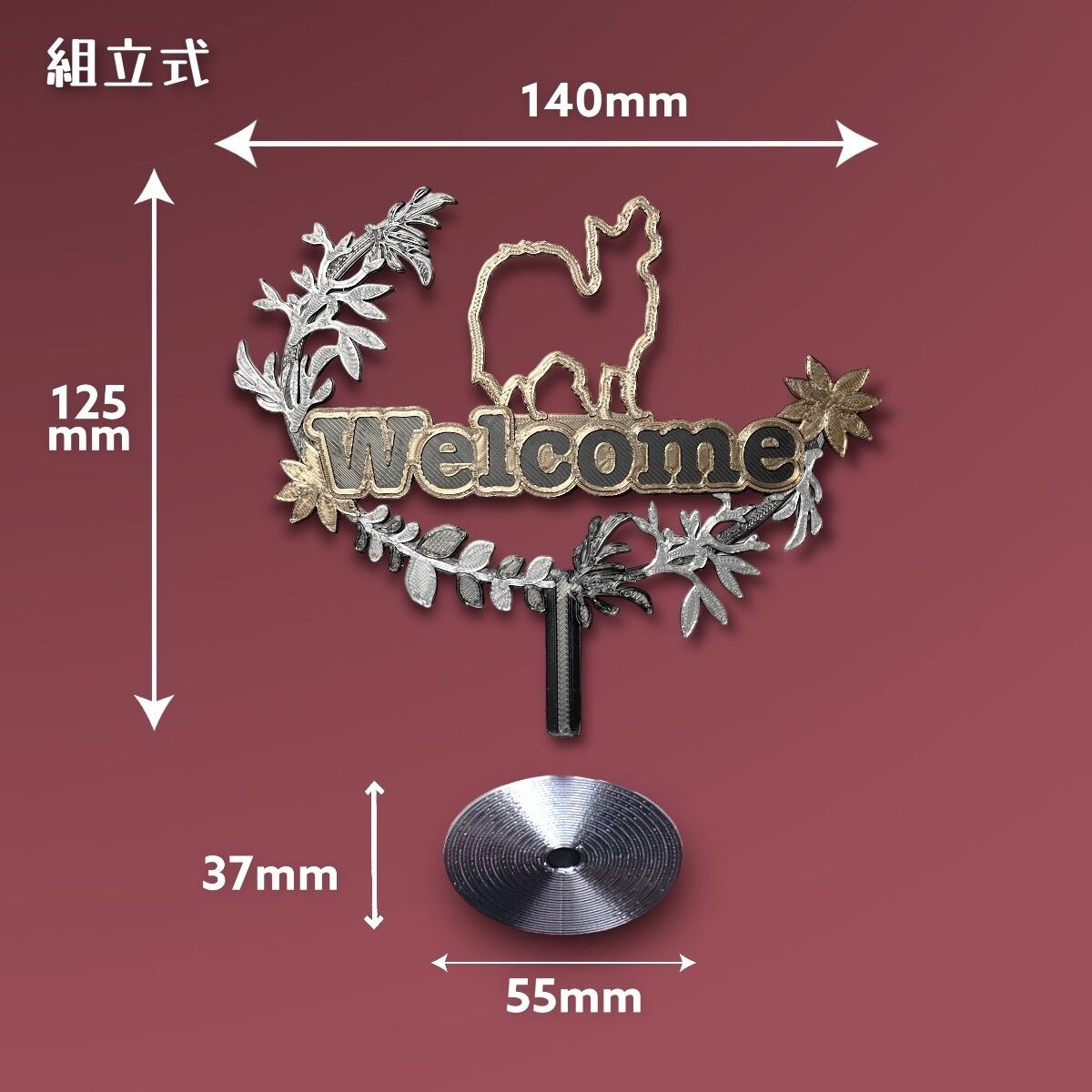 パピヨンのシルエットとwelcomeの文字の入ったインテリアオブジェです。
