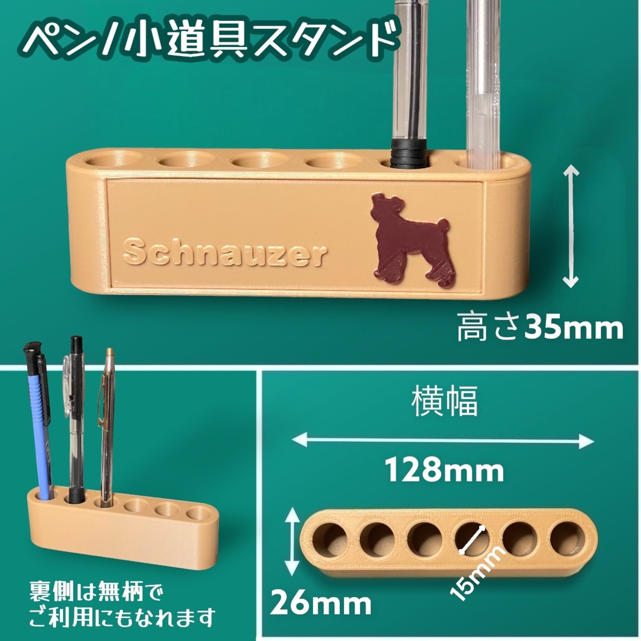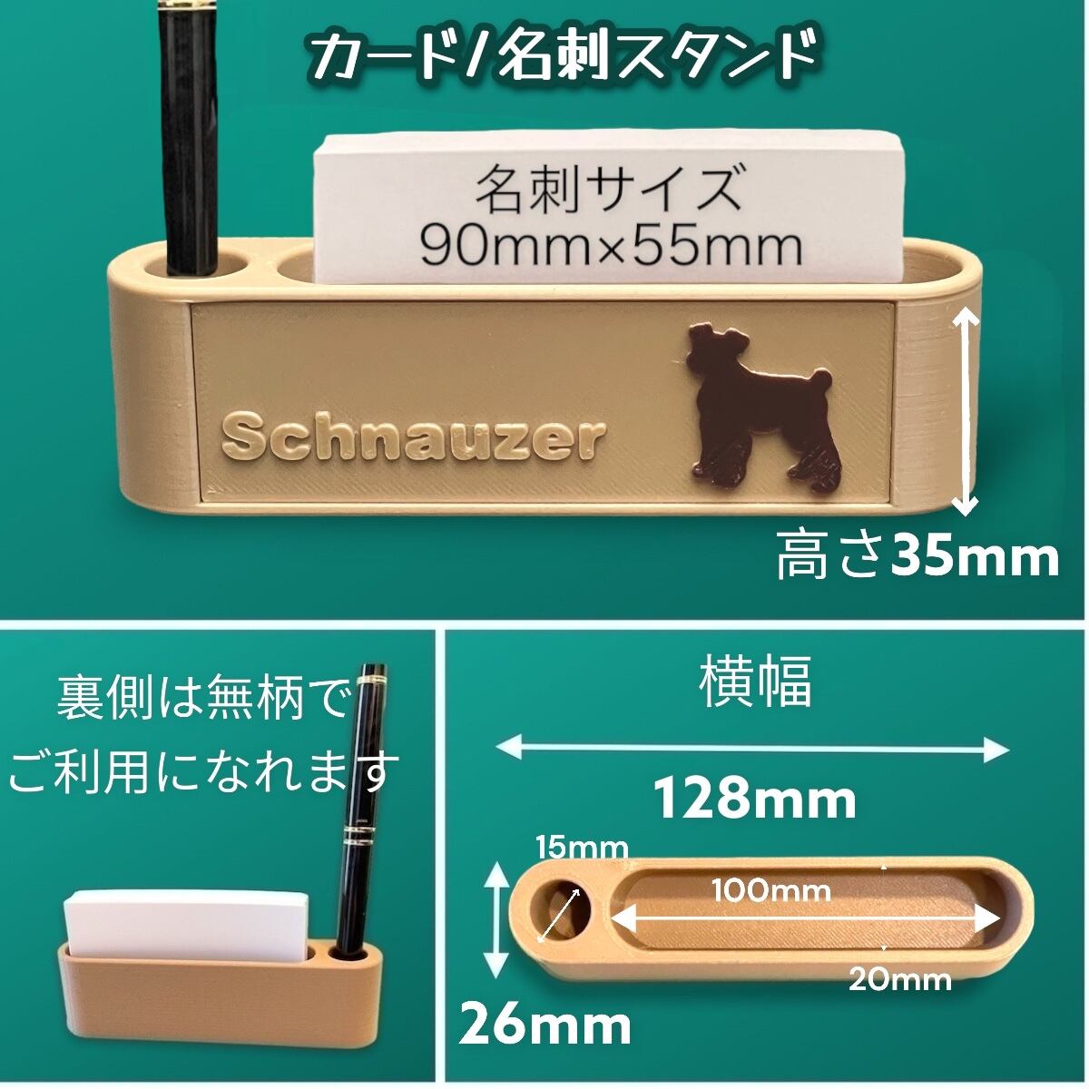 可愛いシュナウザーのリアルなシルエットが付いている、【カード/名刺スタンド】、【ペン/小道具スタンド】です。