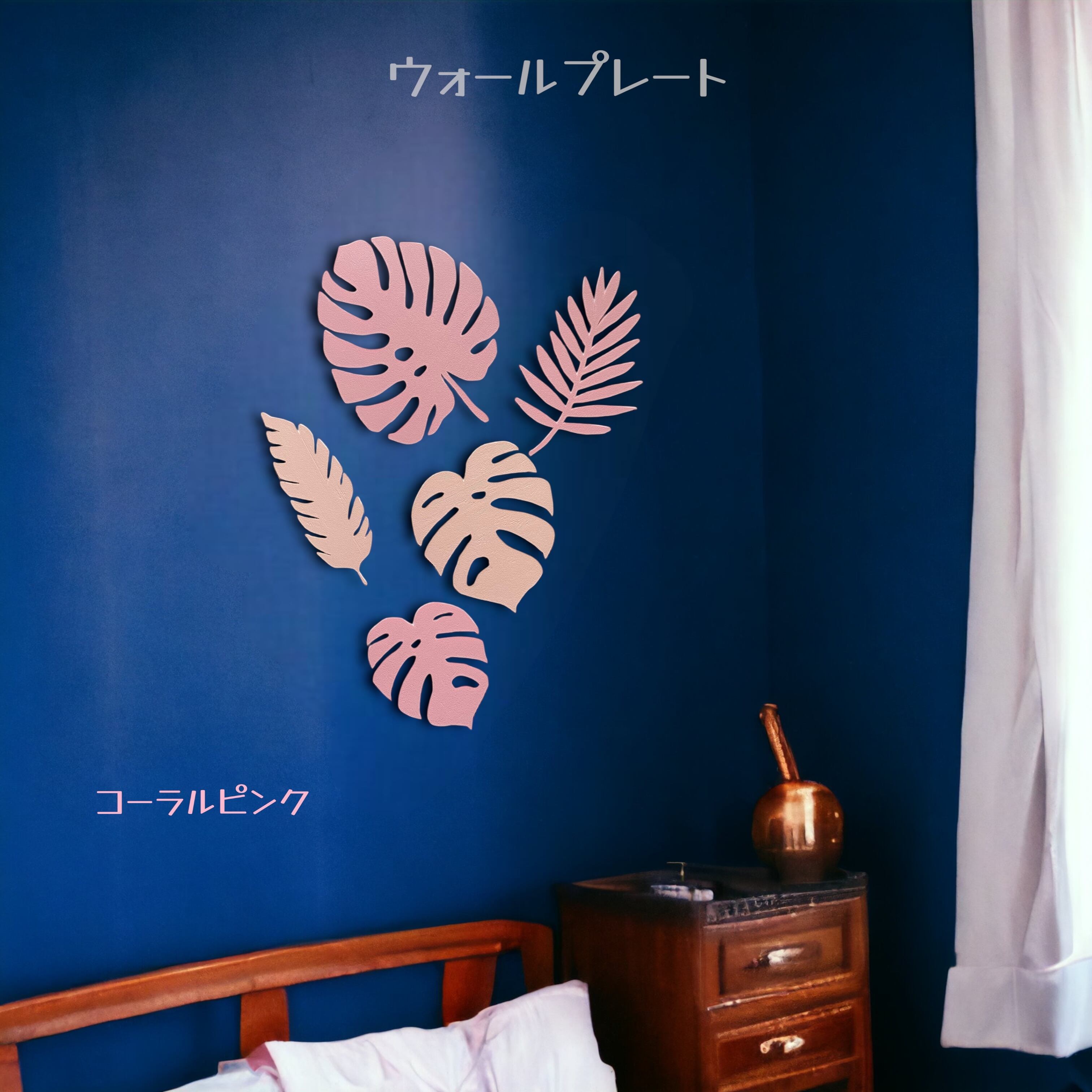トロピカルなリーフ柄のウォールプレート5つをセットにしました。